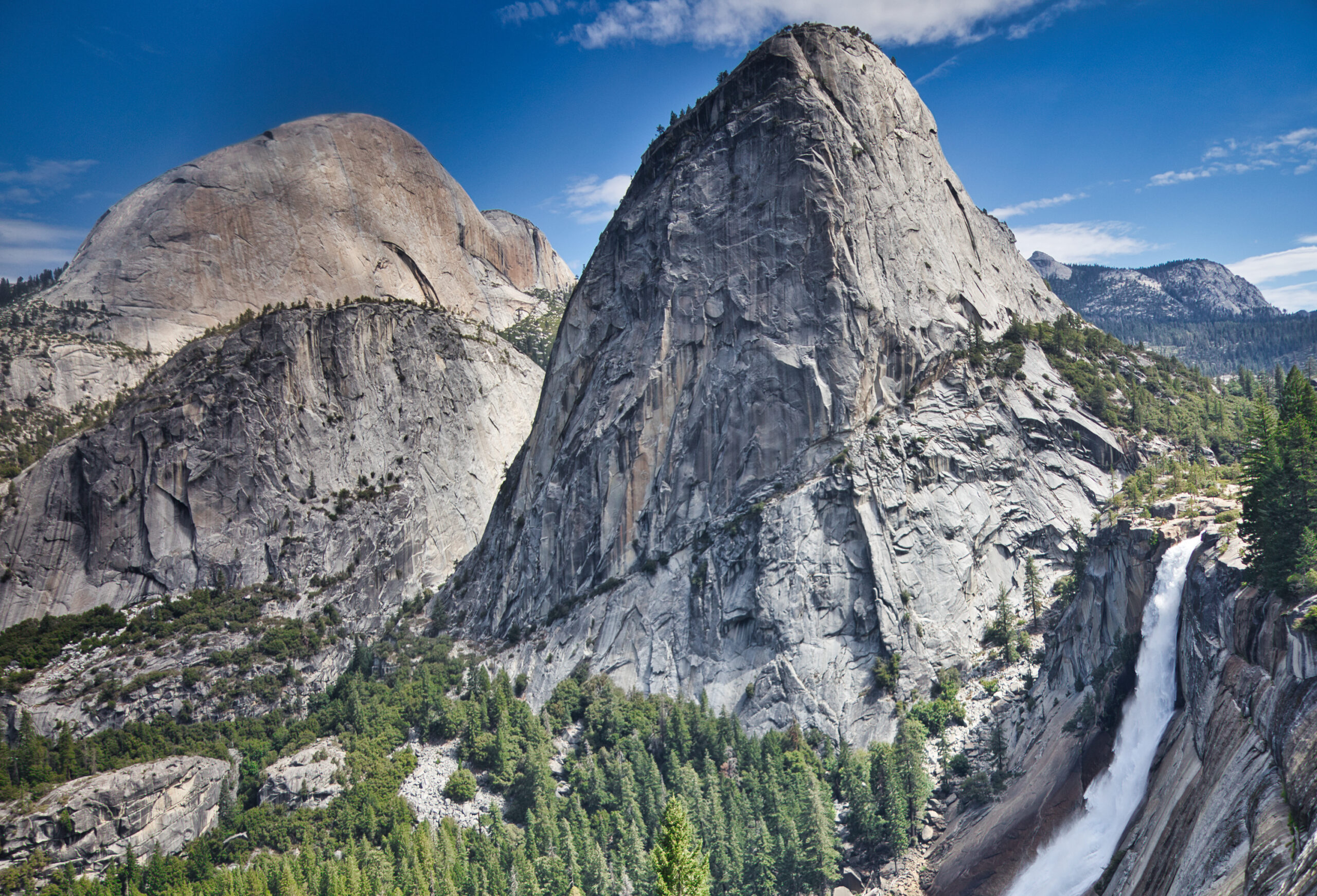 On our final day, we start early to beat the heat and begin the long descent into Yosemite Valley. The trail follows the iconic Mist Trail, passing the Emerald Pool, Vernal Fall, and Nevada Fall before reaching the bustle of Happy Isles and our pickup point at Curry Village.